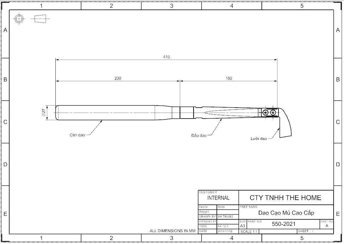 Dao cạo đục trọng lượng 550g - Chiều dài dao 410mm